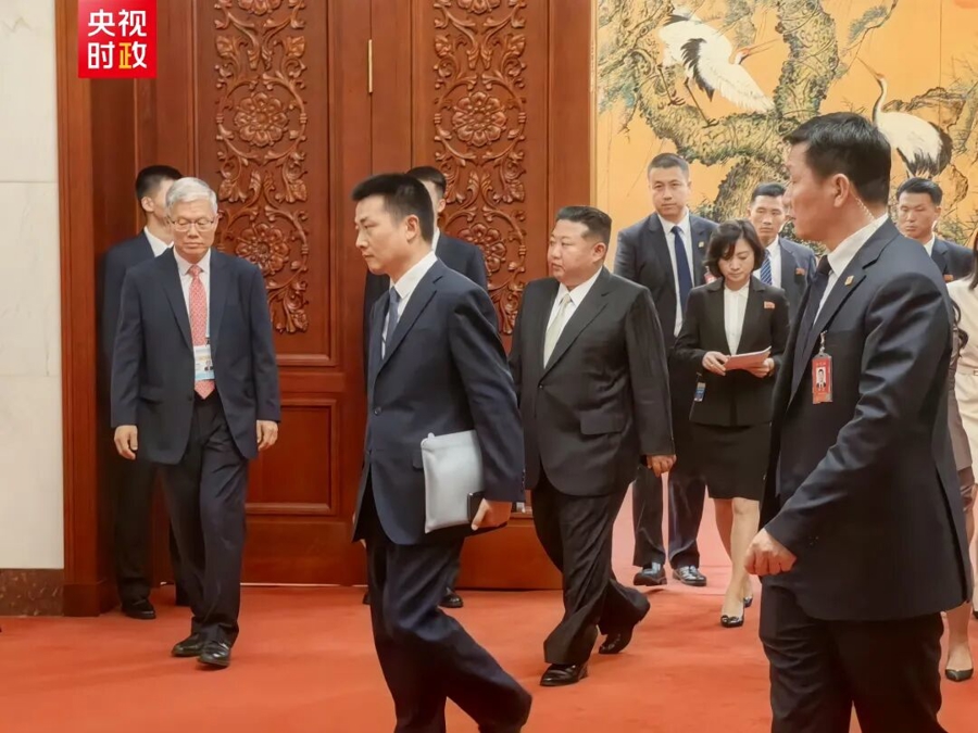 9月4日,中共中央总书记、国家主席习近平在北京人民大会堂同来华出席纪念中国人民抗日战争暨世界反法西斯战争胜利80周年活动的朝鲜劳动党总书记、国务委员长金正恩举行会谈。