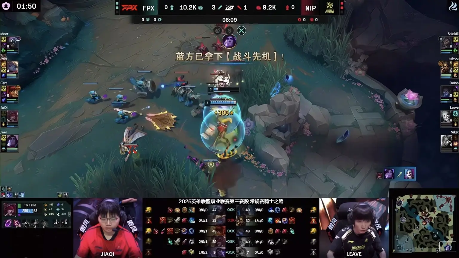 对面打野开局阵亡的情况下,只打了一个红,就跑到fpx蓝区抓Jiejie,对位完成了一波单杀,虽然野区是劣势,但FPX下路站出来了,6分钟双人组线杀,霞直接2-0开局,后续的小龙团,fpx又打出一波0换5,7分钟人头比8:1,这么大的优势,只要正常运营,FPX完全没有输比赛的理由。