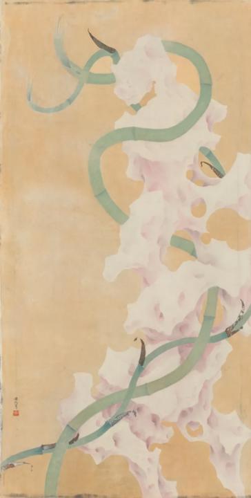 除竹外,黄朝青也画松。其松并非孤高直立,而是饥寒中曲身的生命。植物形态成为内心历程的投射与隐喻。自称“悲剧色彩的浪漫主义者”的他,甚至将意外融入创作——例如绢本被家政误洗后形成的独特肌理,被他转化为创作语言。这种包容失败、拥抱偶然的态度在工笔画家中实属罕见。其画面中还常出现充满想象力的泡泡与夜光元素。