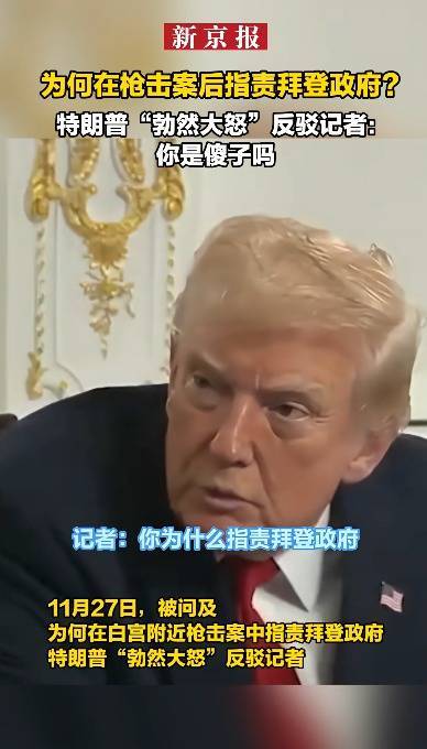 另据参考消息,美国两名国民警卫队成员11月26日在白宫附近遭到枪击身亡,美国总统特朗普当天发表演讲称:拜登是一位灾难性的总统,凶手就是他放进来的。